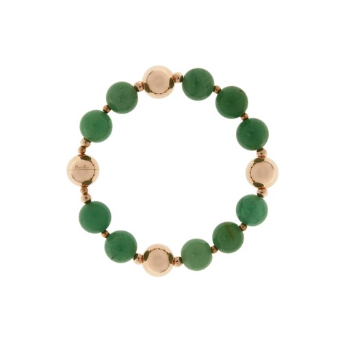 Η αντίθεση μεταξύ των ζωηρόχρωμων λίθων και του ροδαλού χρυσού δίνει σε αυτό το βραχιόλι μια πολύ γοητευτική υφή.